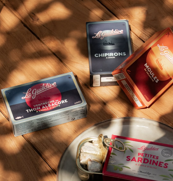 Découvrez les produits d’exception La Guildive, avec leurs fines tranches de jambon Pata Negra, ainsi que leurs conserves raffinées de chipirons, thon et sardines.